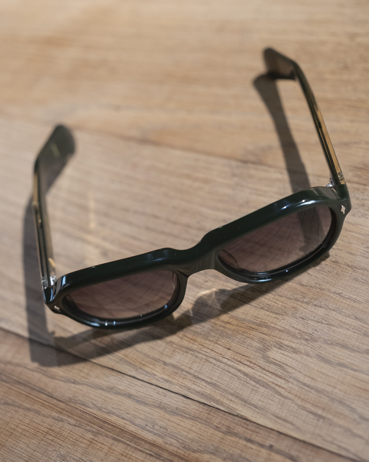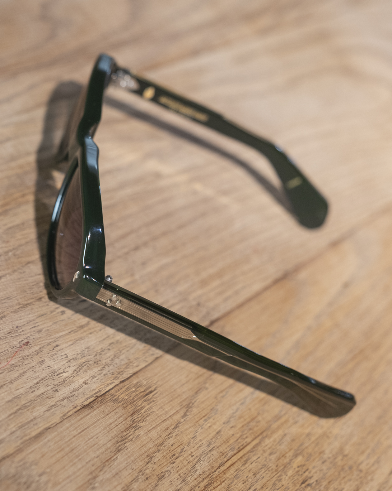 Reinvención contemporánea del aviador clásico, la Richard Viper de Jacques Marie Mage es pura expresión de distinción y savoir-faire artesanal. Hecha a mano en Japón en acetato de alta densidad «Viper», su verde translúcido profundo realza la silueta oval, sobria y elegante. Los remaches frontales en plata esterlina, las varillas laminadas con varilla metálica expuesta y la bisagra personalizada de 7 barriles aportan firmeza y sofisticación, mientras que los icónicos detalles en forma de flecha aportan carácter exclusivo.